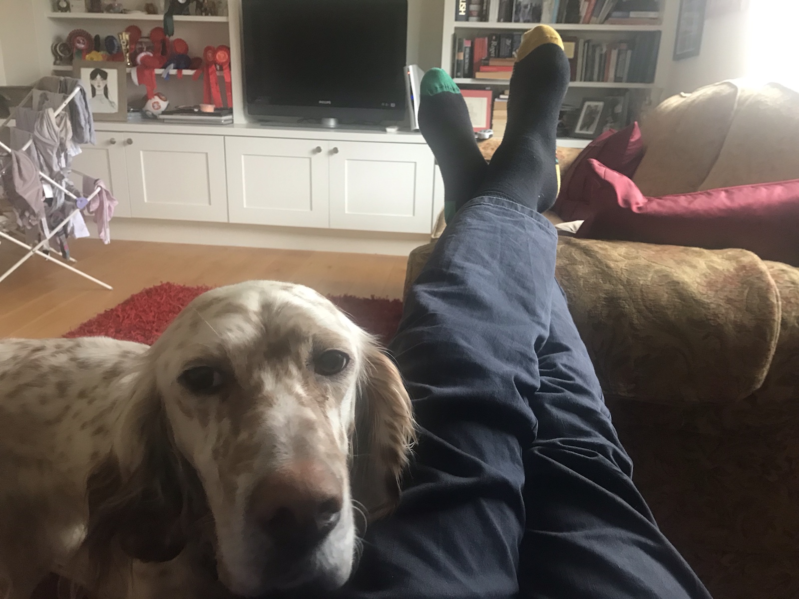 Louis, our English setter, is in the car. I’ll take him for a walk when I finish here.